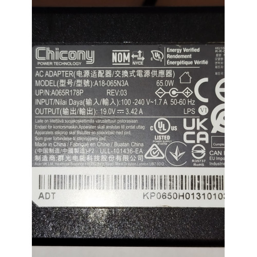 • Cikkszám: Chicony 65W_19V_3_42A_A18-065N3A