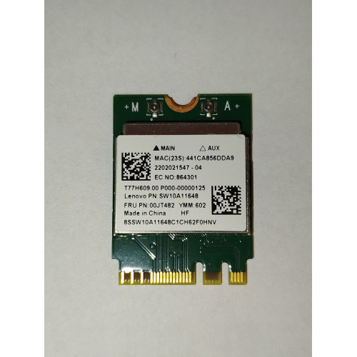 Ez egy M.2 2230 formátumú, Wi-Fi + Bluetooth combo kártya, amit Lenovo gyárilag szállított például ThinkPad sorozatú laptopokba.